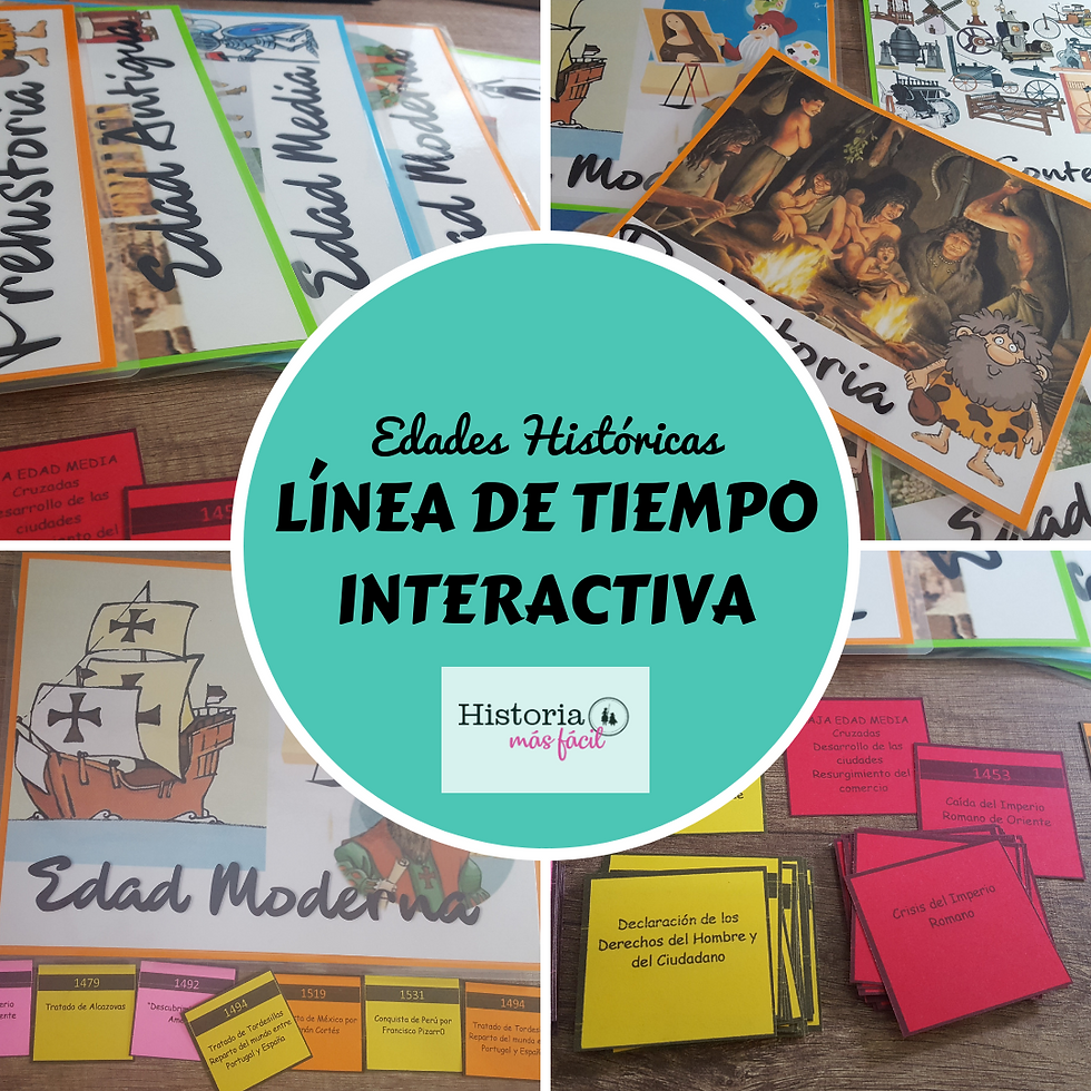 Esta línea interactiva la he pensado para los mas chiquitos de 1er año, pero también puede ser útil para la etapa de repaso o diagnóstico en 2do año. Contiene: 5 tableros; uno por cada edad de la Historia: Edad Antigua, Edad Media, Edad Moderna y Edad Contemporánea; y la Prehistoria.